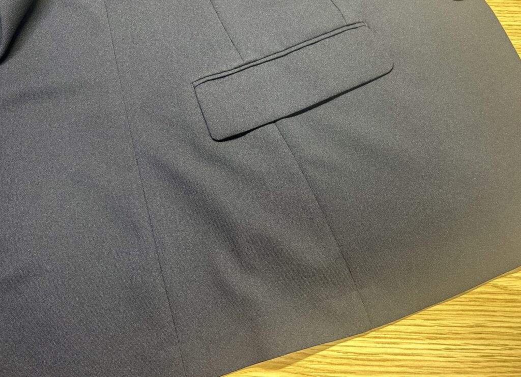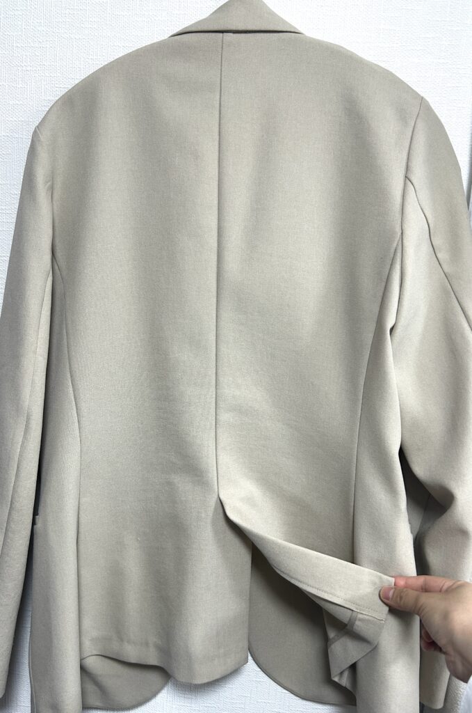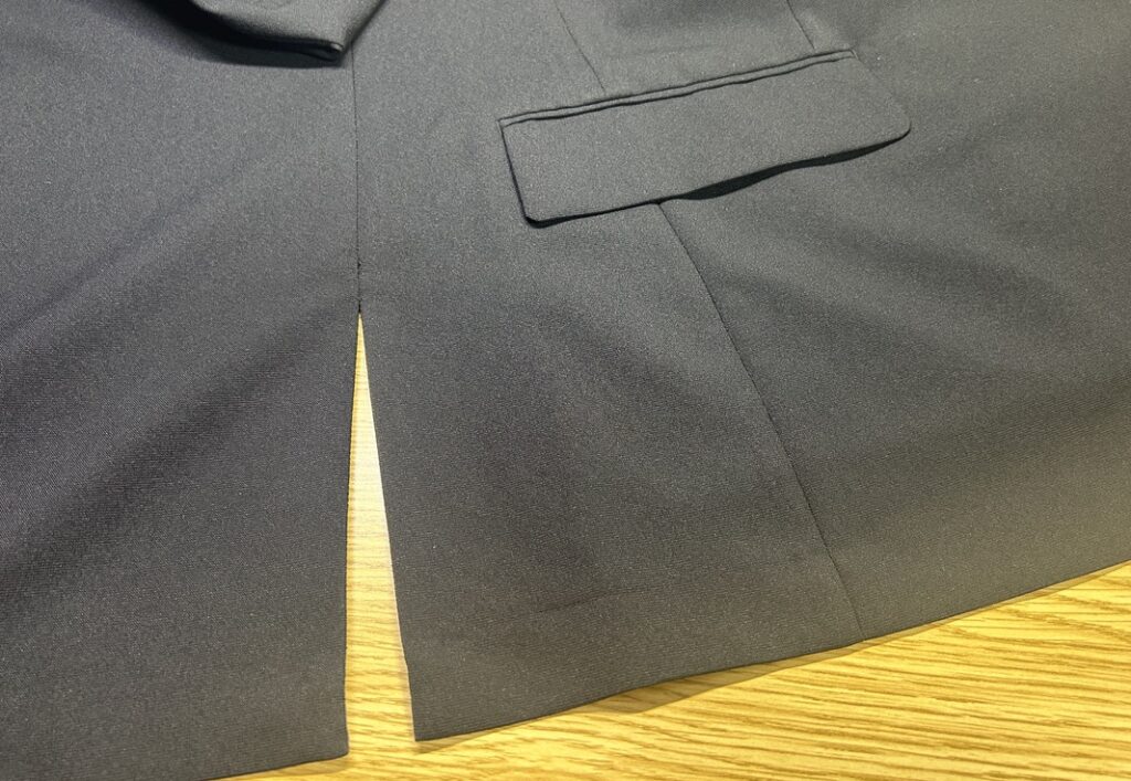 市販のジャケットには、画像のように、背中の裾部分に切れ込みが入っていることがほとんどです。